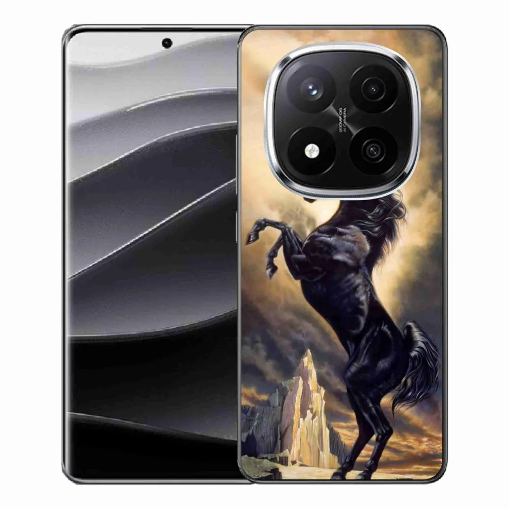 Rugalmas zselés tok mmCase a Xiaomi Redmi Note 14 Pro+ 5G képével - fekete rajzfilm ló
