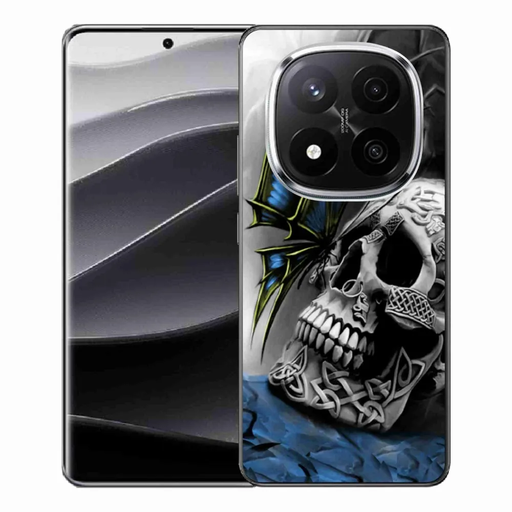 Rugalmas zselés tok mmCase a Xiaomi Redmi Note 14 Pro+ 5G képével - pillangó és koponya