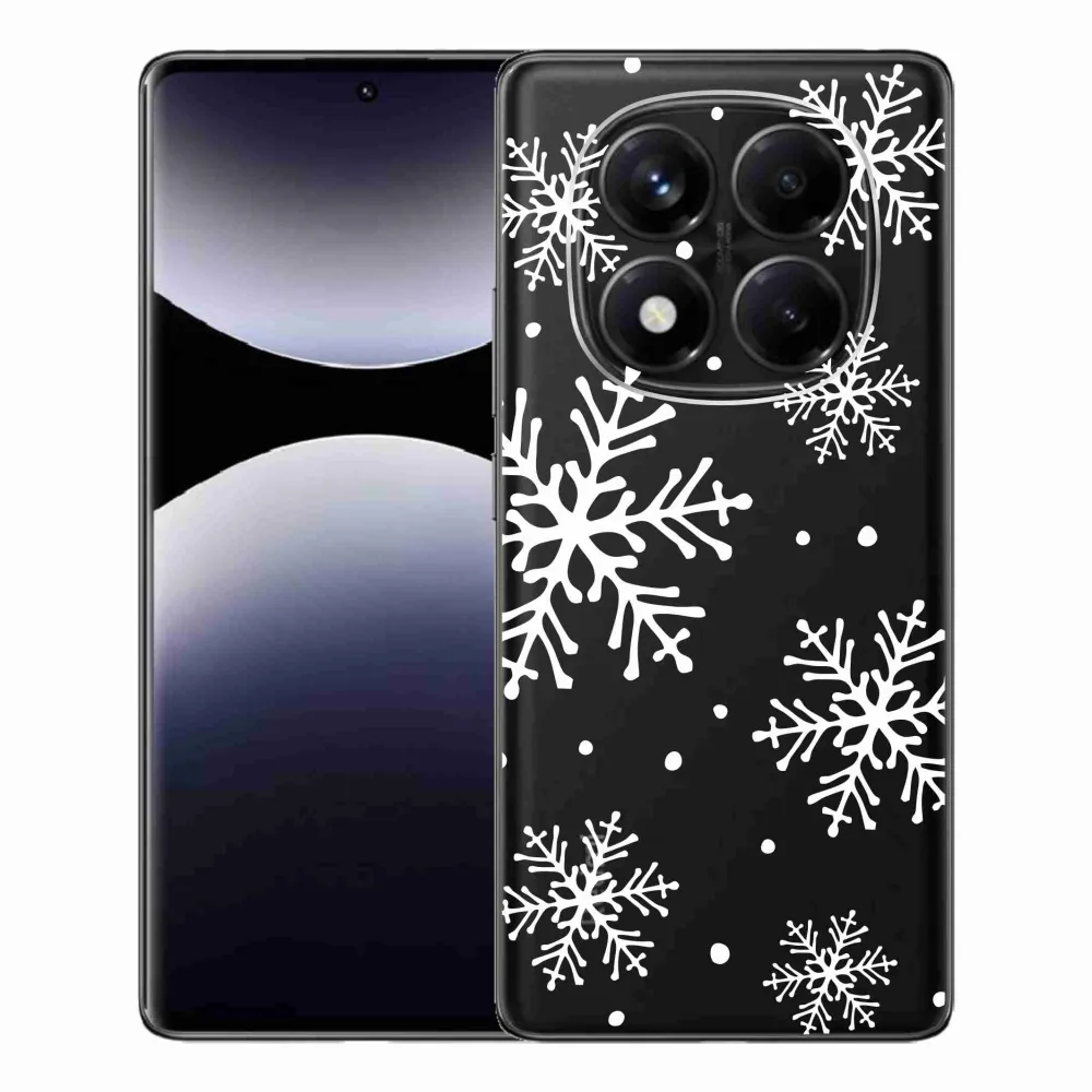 Rugalmas zselés tok mmCase kép Xiaomi Redmi Note 14 Pro - fehér hópelyhek átlátszó háttérrel