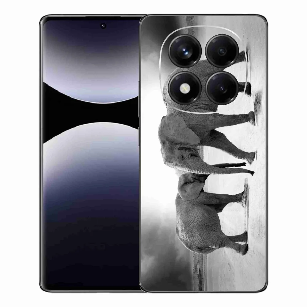 Rugalmas zselés tok mmCase a Xiaomi Redmi Note 14 Pro képével - fekete és fehér elefántok