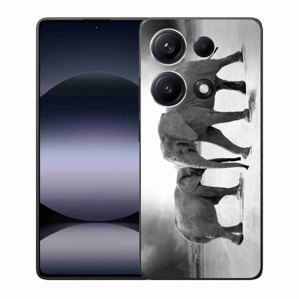 Rugalmas gél tok mmCase kép Xiaomi Redmi Note 14S - fekete és fehér elefántok képével