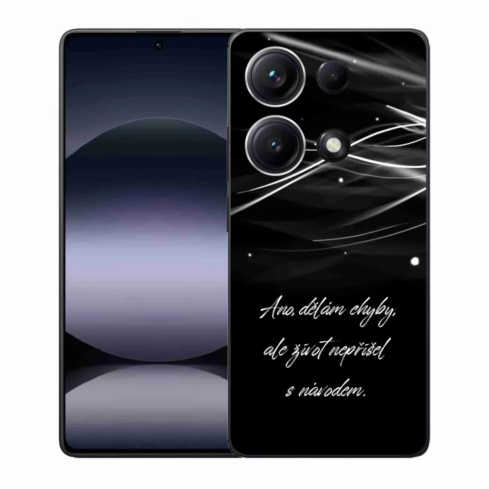 Rugalmas zselés tok mmCase kép Xiaomi Redmi Note 14S - idézet fekete háttérrel