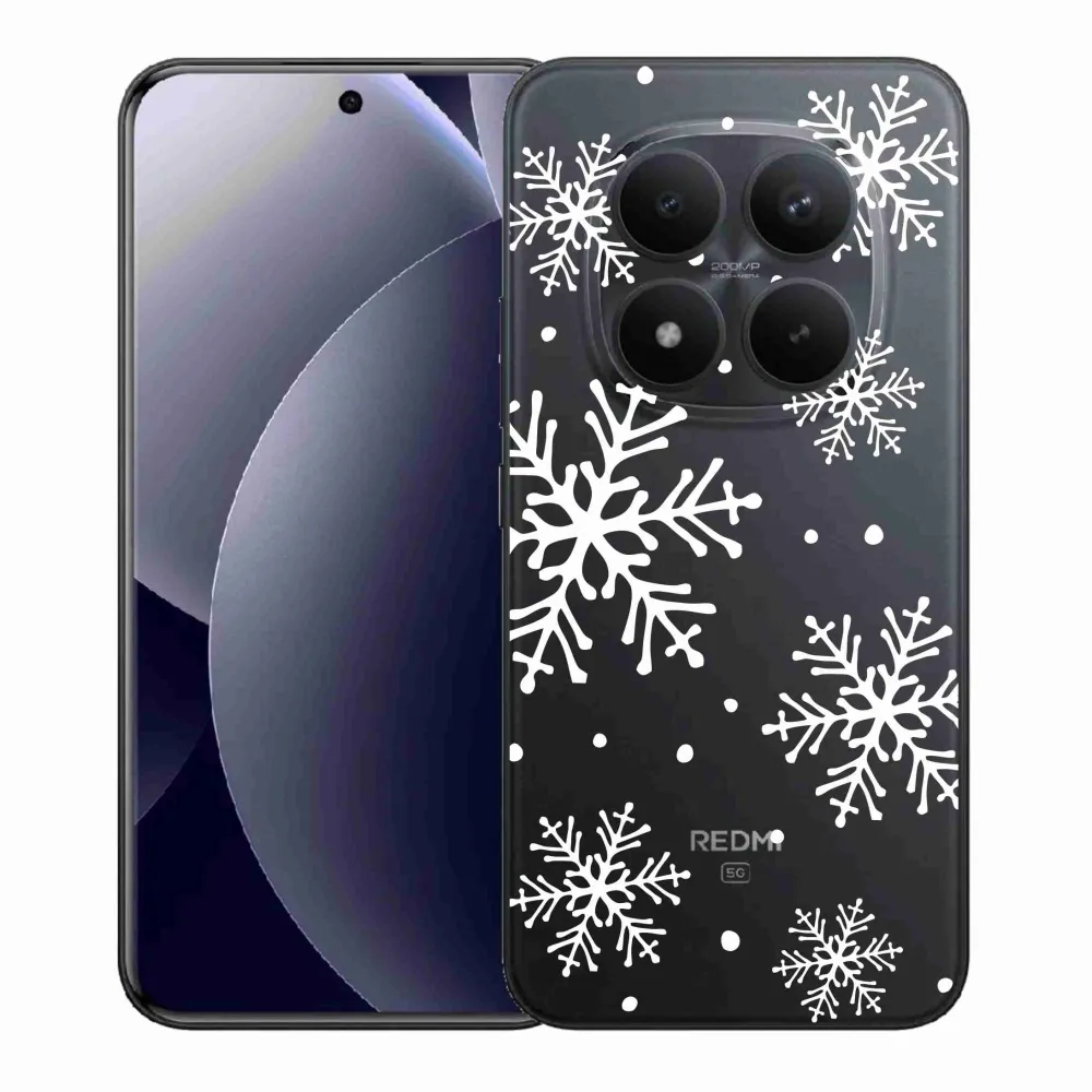 Rugalmas zselés tok mmCase képpel a Xiaomi Redmi Note 15 Pro+ 5G/Xiaomi Poco M8 Pro 5G - fehér hópelyhek átlátszó háttéren