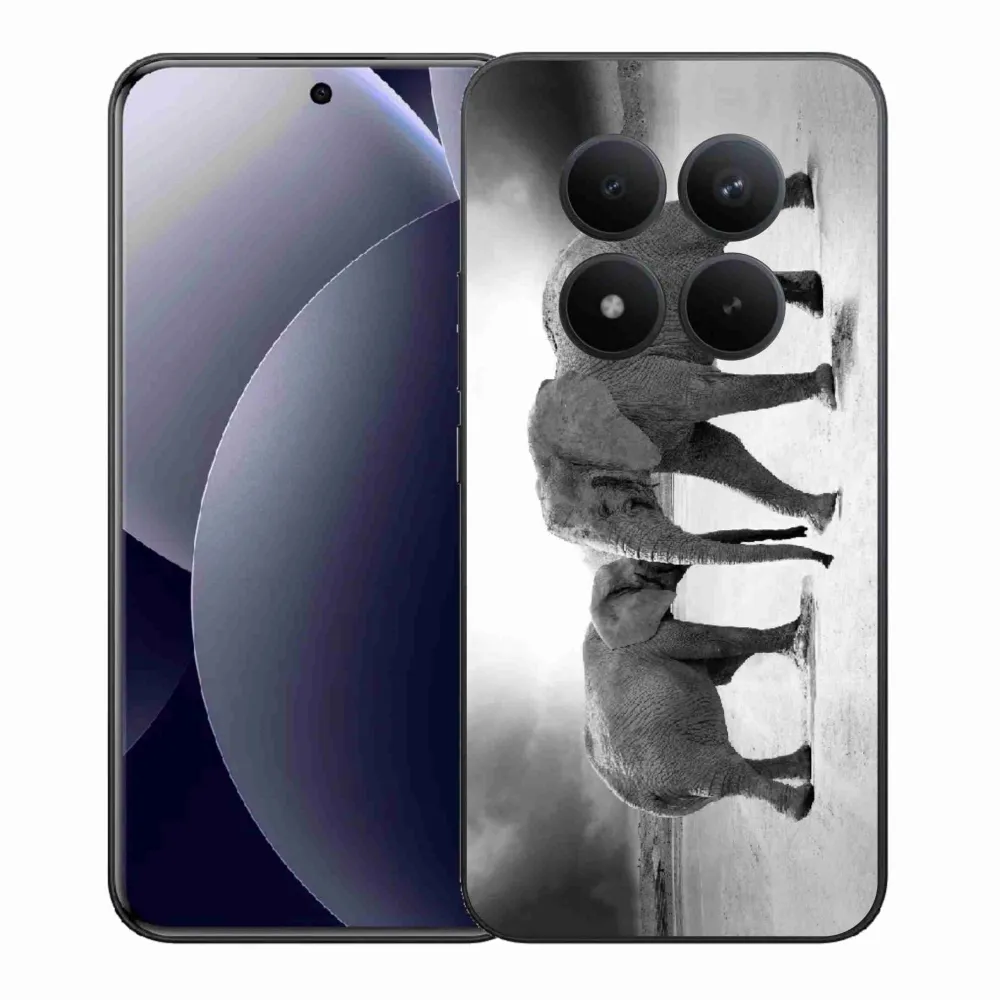 Rugalmas gél tok mmCase a Xiaomi Redmi Note 15 Pro+ 5G/Xiaomi Poco M8 Pro 5G képével - fekete és fehér elefántok