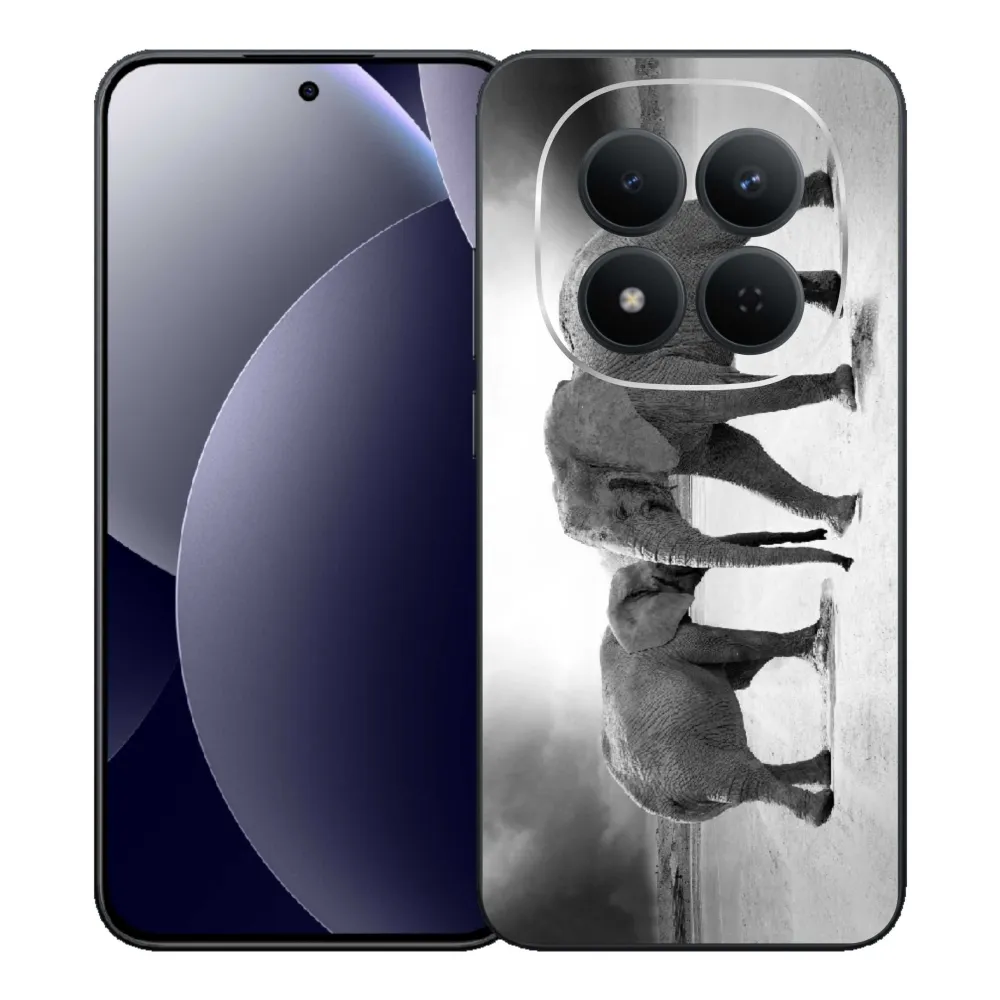 Rugalmas gél tok mmCase a Xiaomi Redmi Note 15 Pro 5G képével - fekete és fehér elefántok