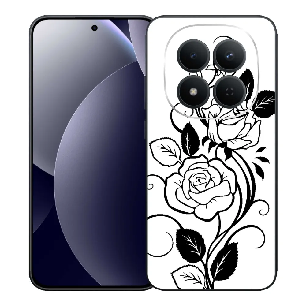 Rugalmas zselés tok mmCase a Xiaomi Redmi Note 15 Pro 5G képével - fekete és fehér rózsa