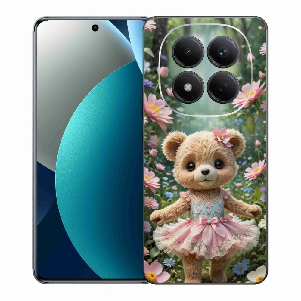 Rugalmas zselés tok mmCase kép Xiaomi Redmi Note 15 Pro - aranyos mackó virágokban