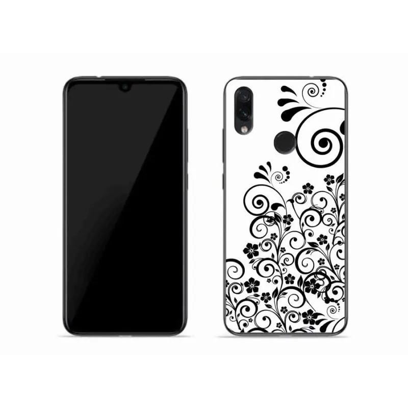 Gél borítás mmCase a Xiaomi Redmi Note 7 készülékhez - fekete és fehér virágmintás
