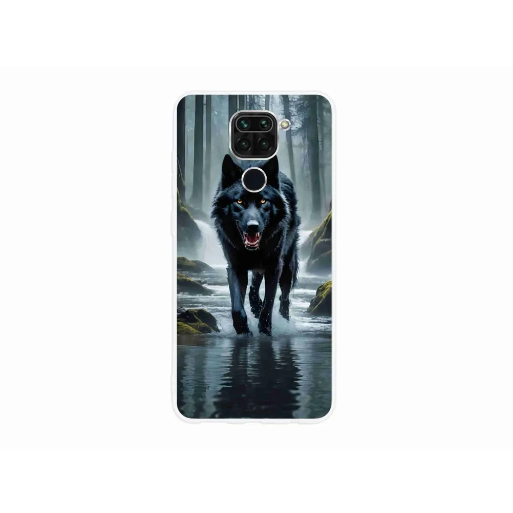 Rugalmas zselés tok mmCase képpel a Xiaomi Redmi Note 9-en - fekete farkas