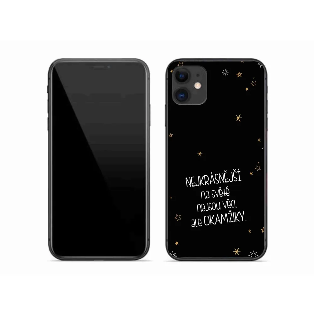 Rugalmas zselés tok mmCase képpel iPhone 11 - idézet 4 fekete háttérrel