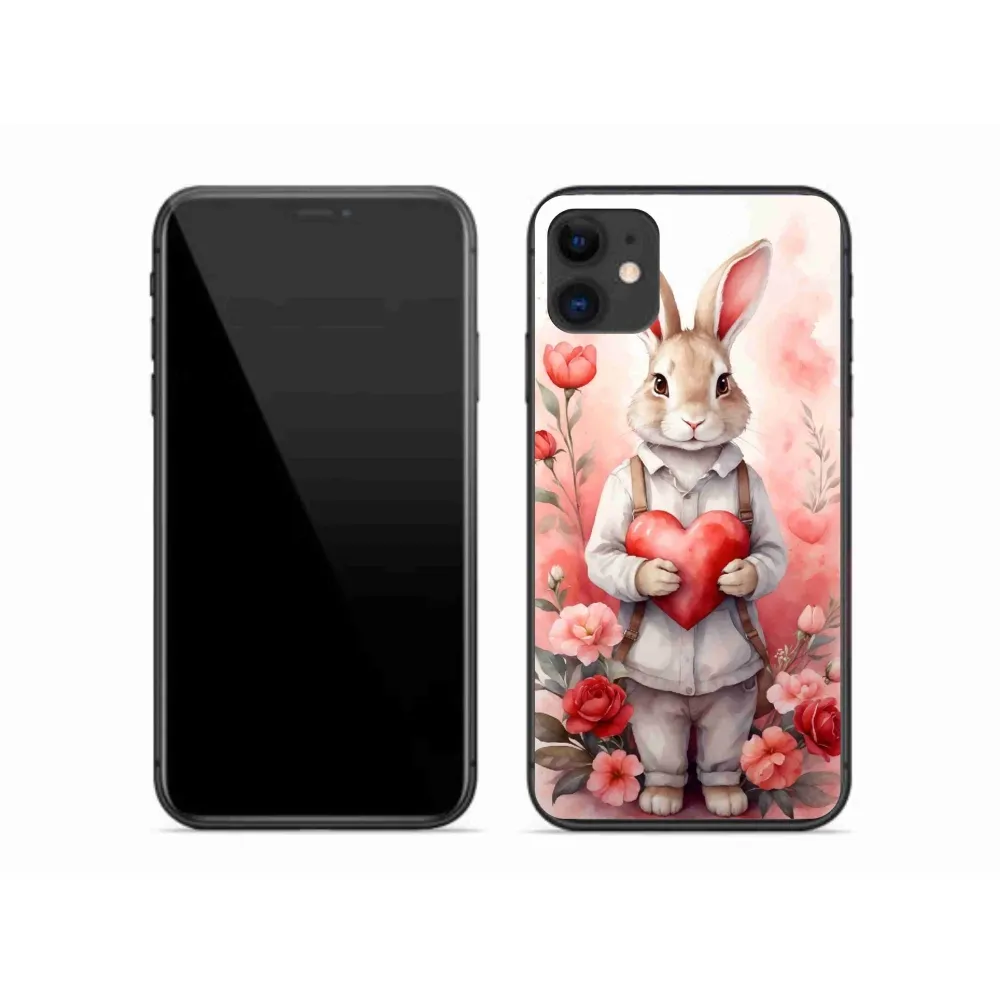 Rugalmas zselés tok mmCase képpel iPhone 11 készülékhez - nyúl szívvel