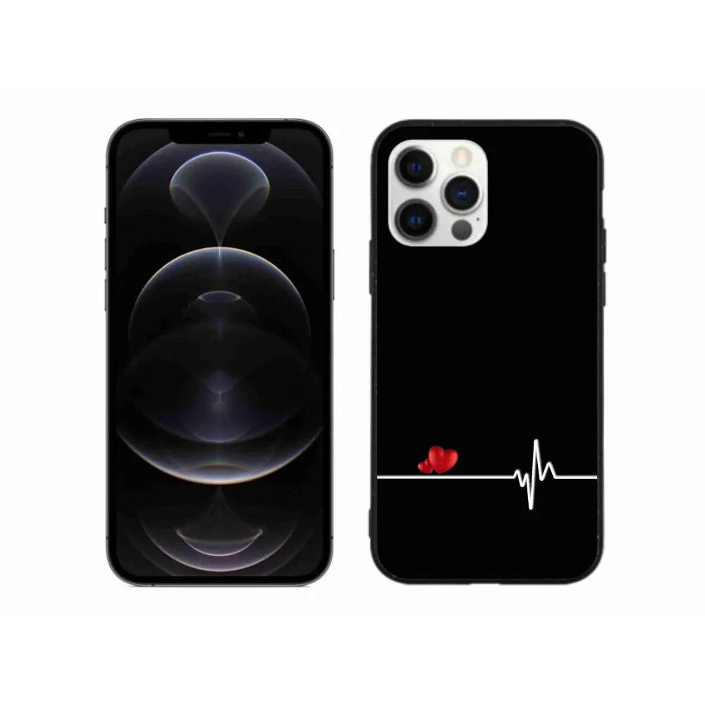 Rugalmas zselés tok mmCase képpel iPhone 12 Pro Max készülékhez - szív és szívverés fekete háttérrel
