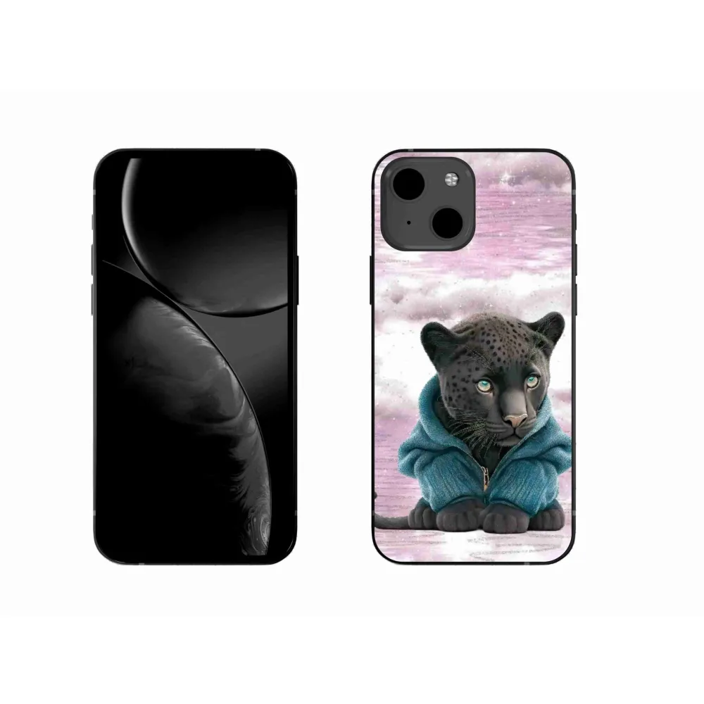 Rugalmas zselés tok mmCase képpel iPhone 13-hoz - fekete párduc pulóverben