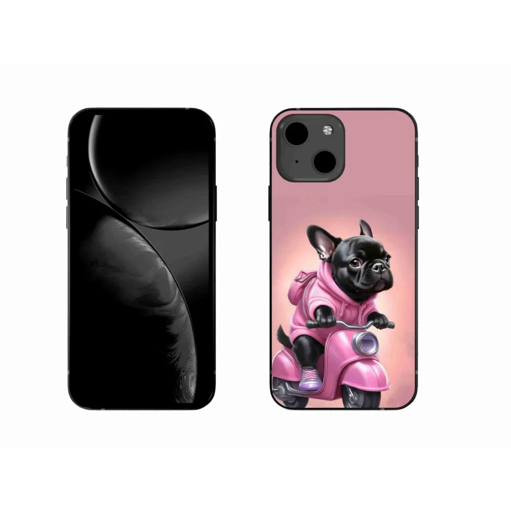 Rugalmas zselés tok mmCasse képpel iPhone 13-hoz - Francia bulldog robogón