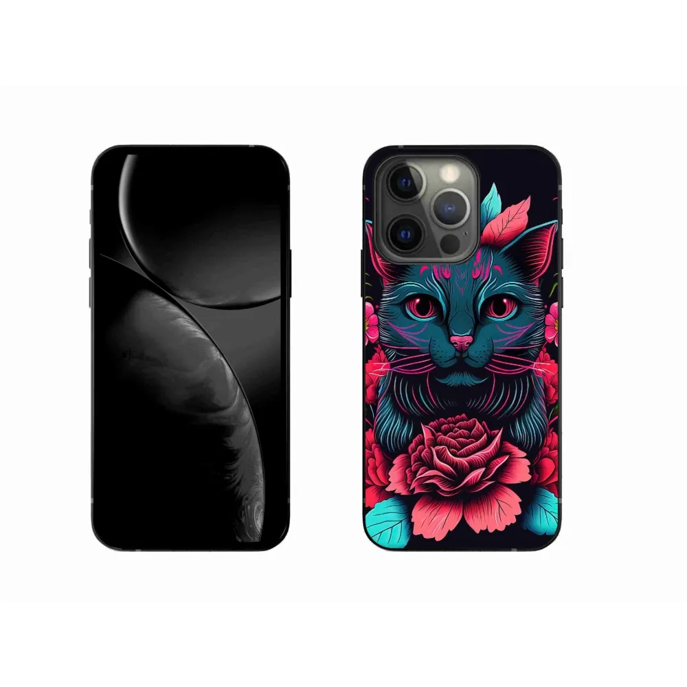 Gél borítás mmCase iPhone 13 Pro készülékhez - virágok és macska