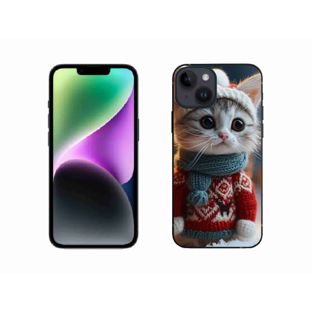 Rugalmas zselés tok mmCase képpel iPhone 14 készülékhez - cica pulóverben