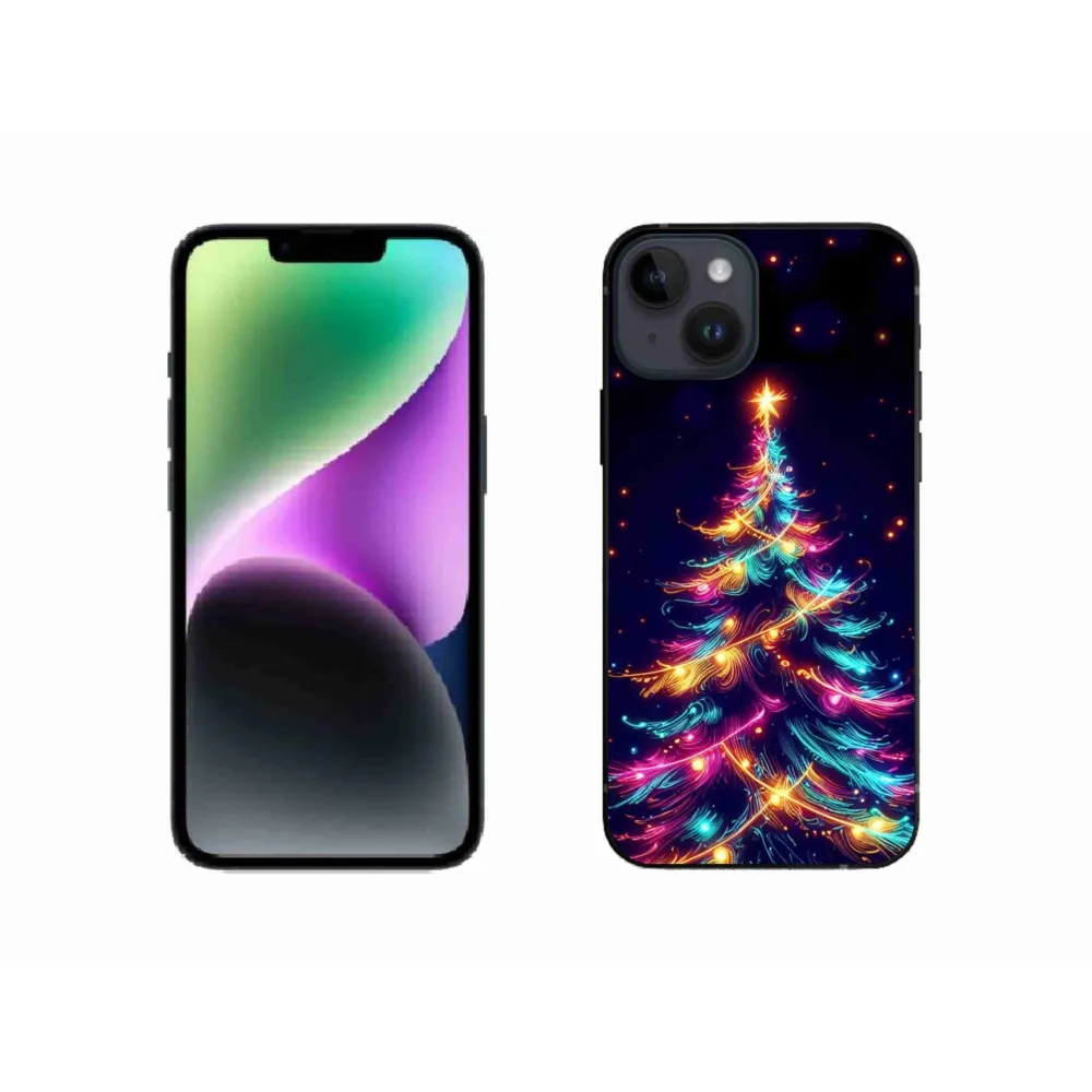 Rugalmas zselés tok mmCase képpel iPhone 14 - neon karácsonyfa - iPhone 14-hez