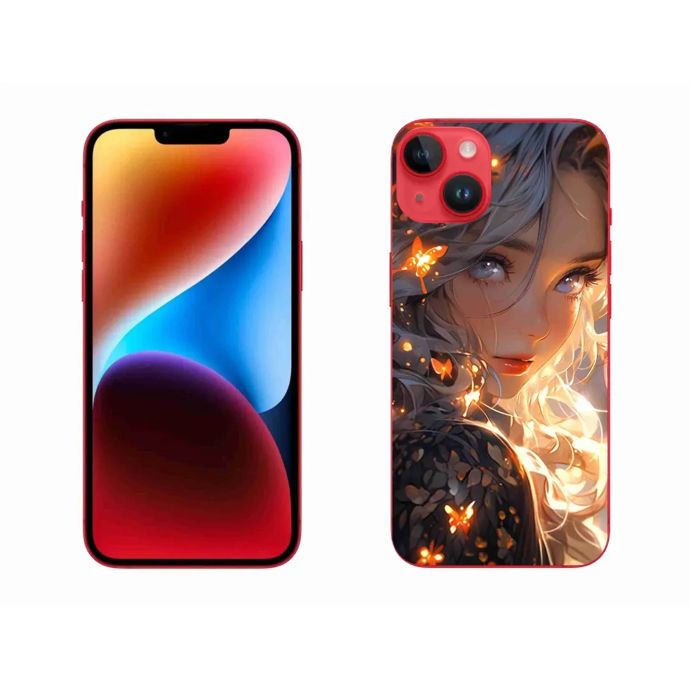 Rugalmas zselés tok mmCase képpel iPhone 14 Plus készülékhez - lány és pillangó