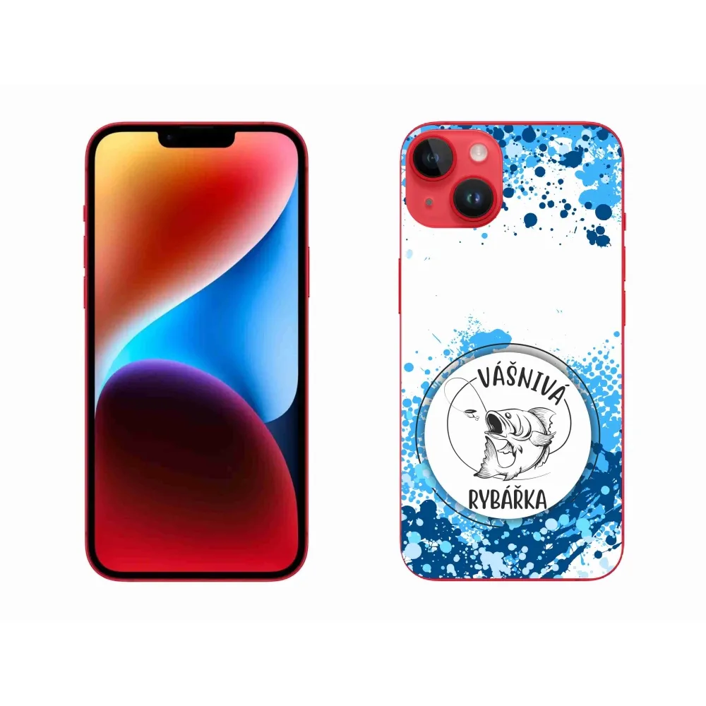 Rugalmas zselés tok mmCase képpel iPhone 14 Plus készülékhez - szenvedélyes halász fehér háttérrel