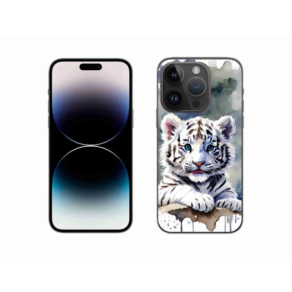 Rugalmas zselés tok mmCase képpel iPhone 14 Pro készülékhez - fehér tigriskölyök