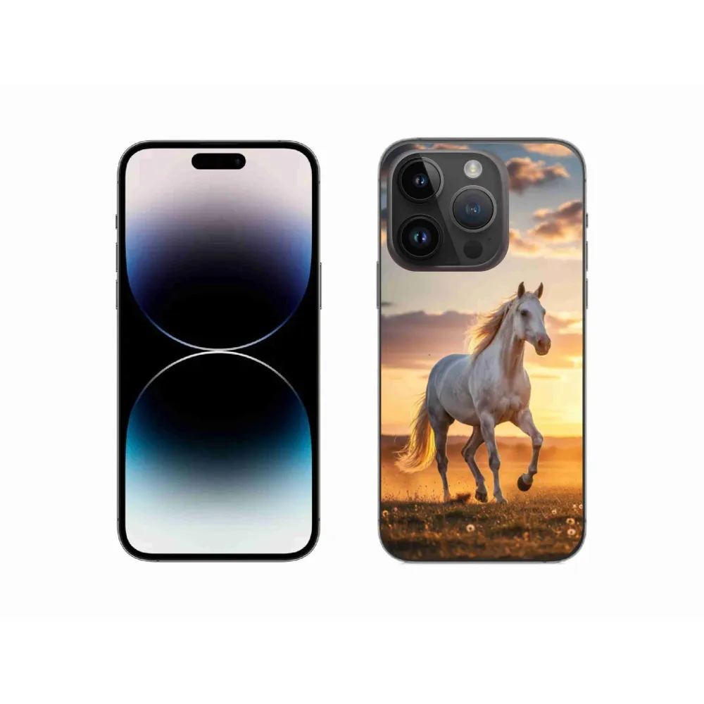 Rugalmas zselés tok mmCase képpel iPhone 14 Pro - futó fehér ló 2