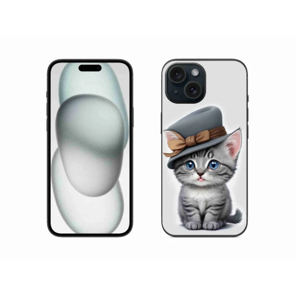 Rugalmas zselés tok mmCase képpel iPhone 15 készülékhez - cica sapkával