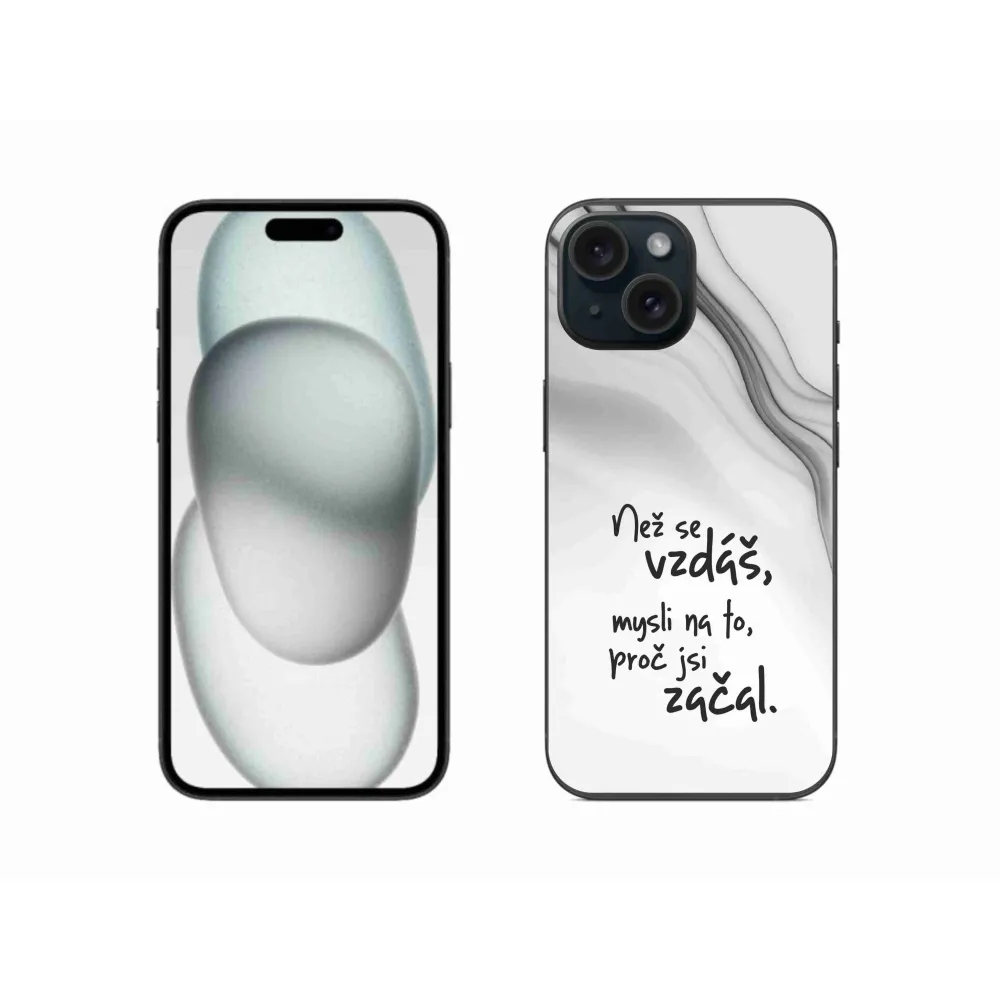Rugalmas zselés tok mmCase képpel iPhone 15 - idézet 2 fehér háttérhez