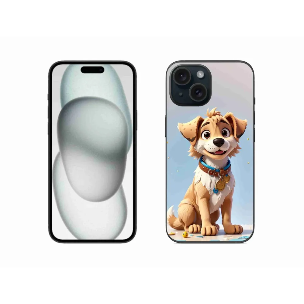 Rugalmas zselés tok mmCase képpel iPhone 15 - rajzfilm kölyökkutyához