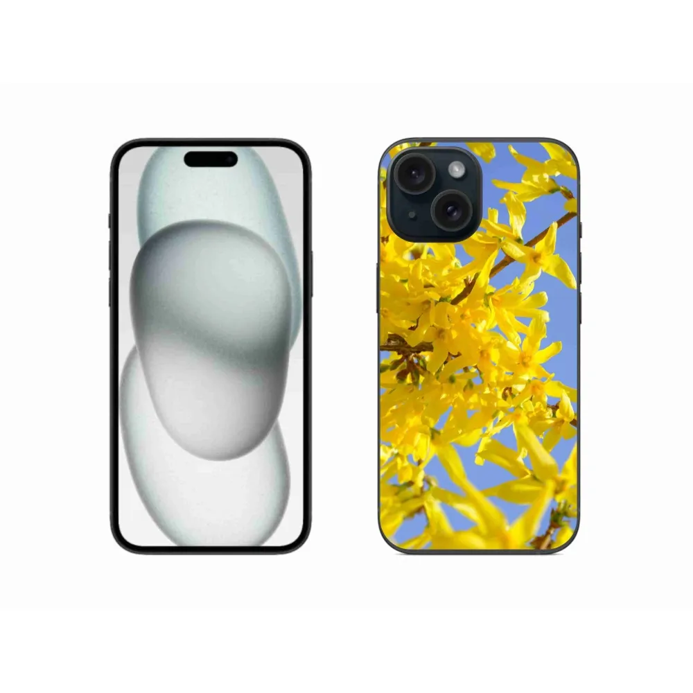 Rugalmas zselés tok mmCase képpel iPhone 15-hez - sárga virágok