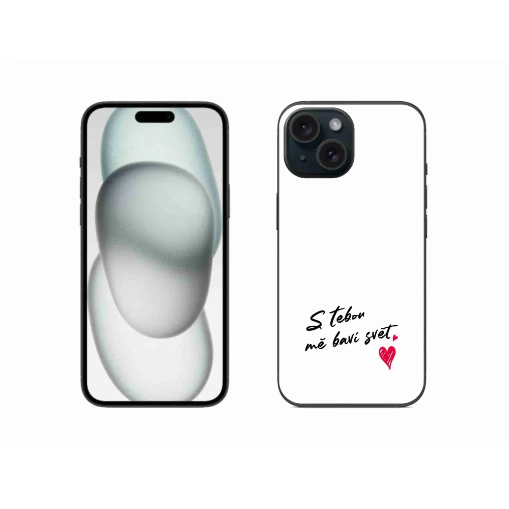 Rugalmas zselés tok mmCase képpel iPhone 15 készülékhez - szerelmes szöveg 1 fehér háttér