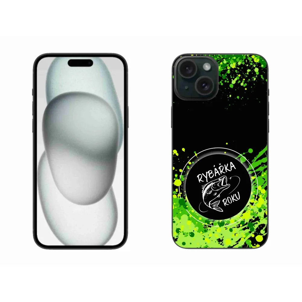 Rugalmas zselés tok mmCase képpel iPhone 15 Plus készülékhez - Az év horgásza fekete háttérrel