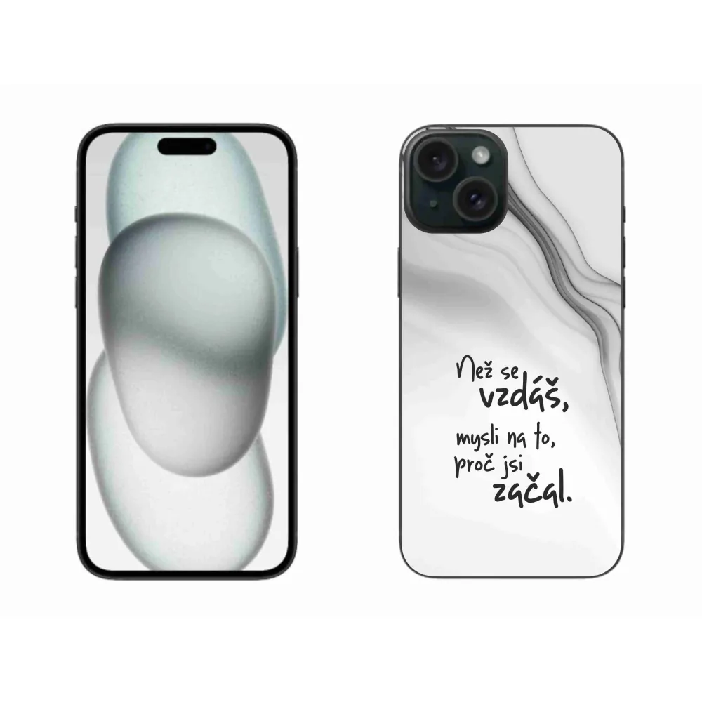 Rugalmas zselés tok mmCase képpel iPhone 15 Plus készülékhez - idézet 2 fehér háttérrel