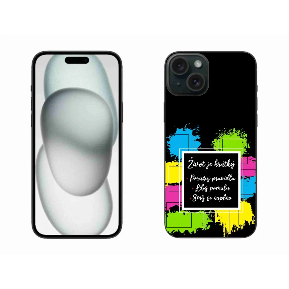 Rugalmas zselés tok mmCase képpel iPhone 15 Plus - idézet 5 fekete háttérrel