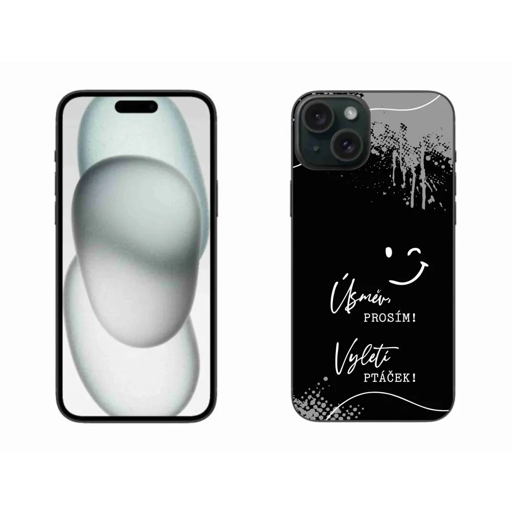 Rugalmas zselés tok mmCase képpel iPhone 15 Plus - vicces szöveg 4 fekete háttérrel