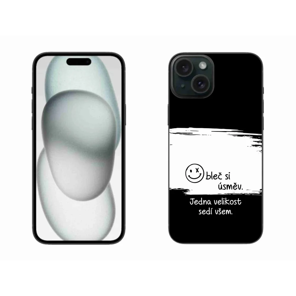Gél borítás mmCase iPhone 15 Plus készülékhez - vicces szöveg 8 fekete-fehér háttérrel