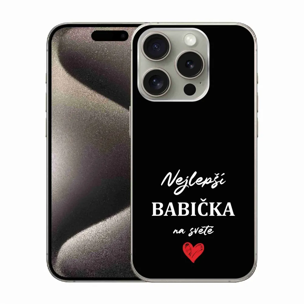Rugalmas zselés tok mmCase képpel iPhone 15 Pro - Best Grandma 1 fekete háttérrel