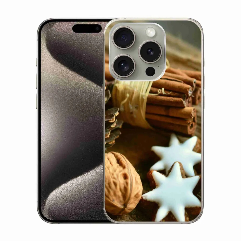 Rugalmas zselés tok mmCase képpel iPhone 15 Pro készülékhez - fahéj és mézeskalács