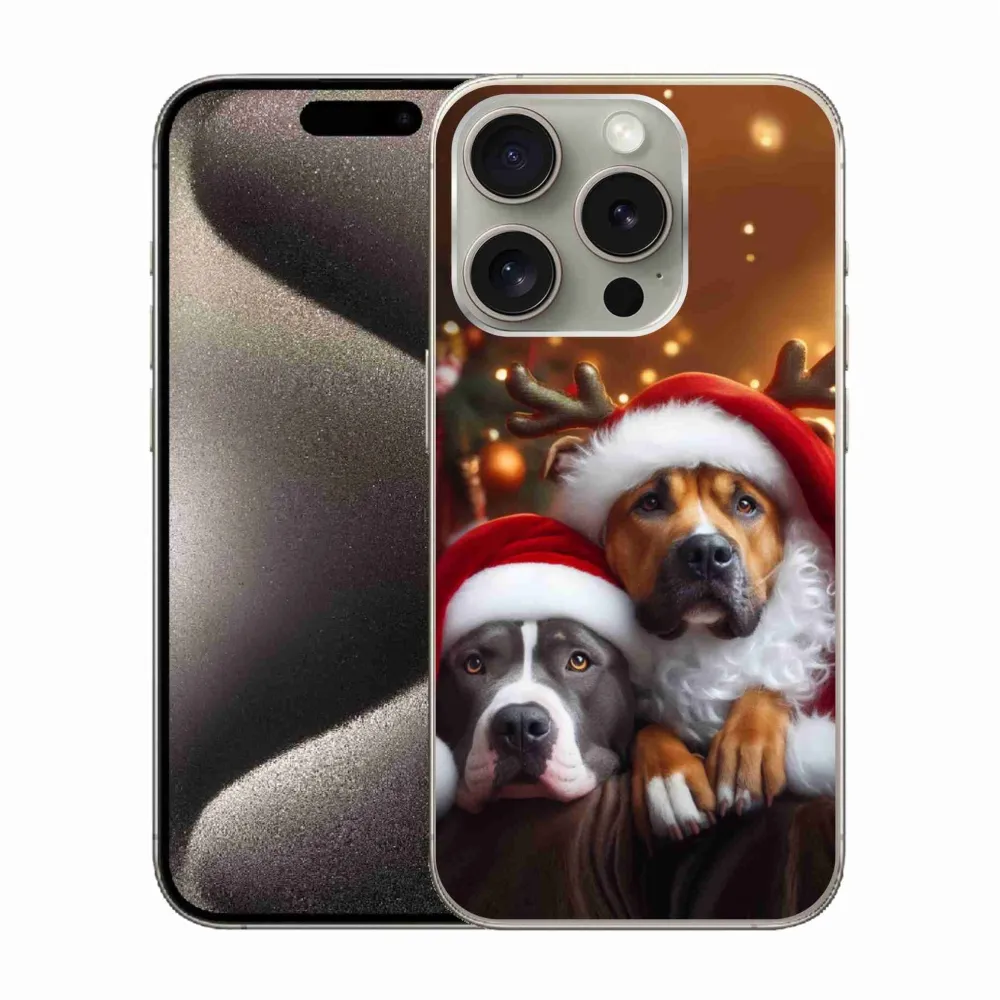 Rugalmas zselés tok mmCase képpel iPhone 15 Pro készülékhez - Karácsonyi kutyák