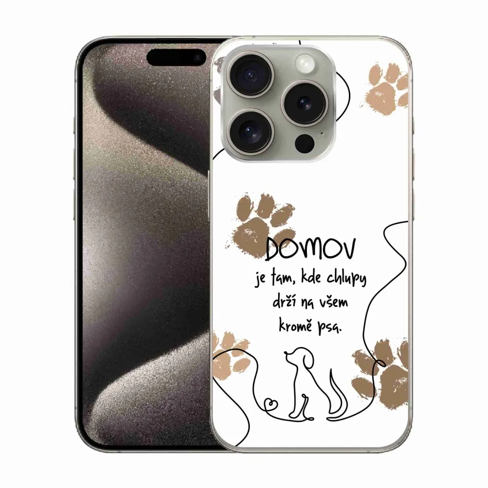 Rugalmas zselés tok mmCase képpel iPhone 15 Pro készülékhez - kutya motívum fehér háttérrel