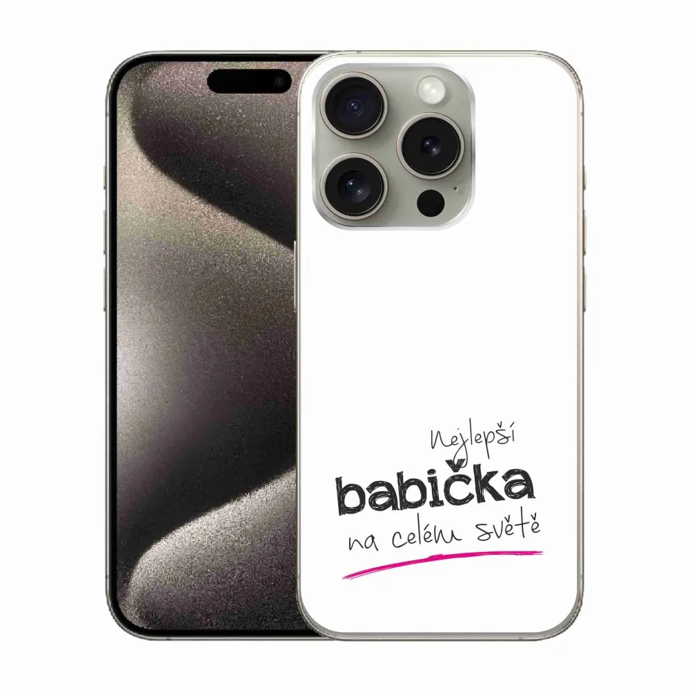Rugalmas zselés tok mmCase képpel iPhone 15 Pro - legjobb nagymama 4 fehér háttérrel