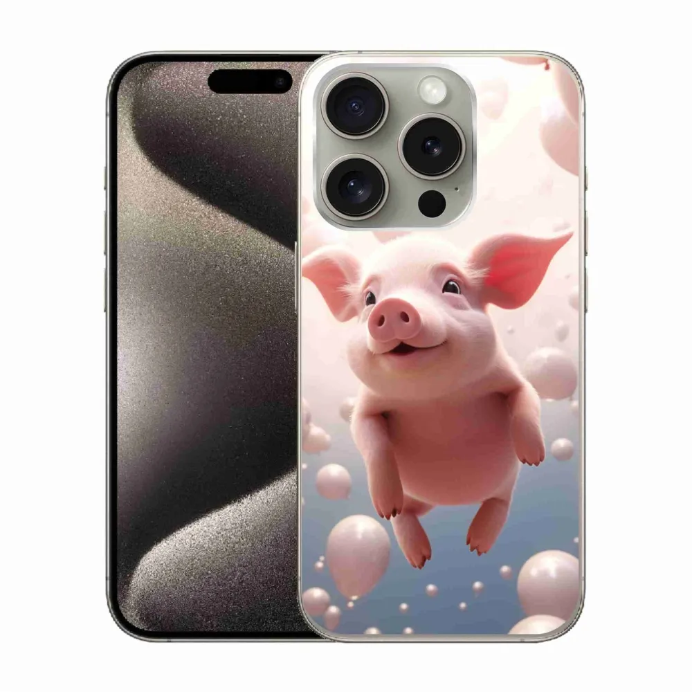 Rugalmas zselés tok mmCase képpel iPhone 15 Pro készülékhez - malacka lufikkal