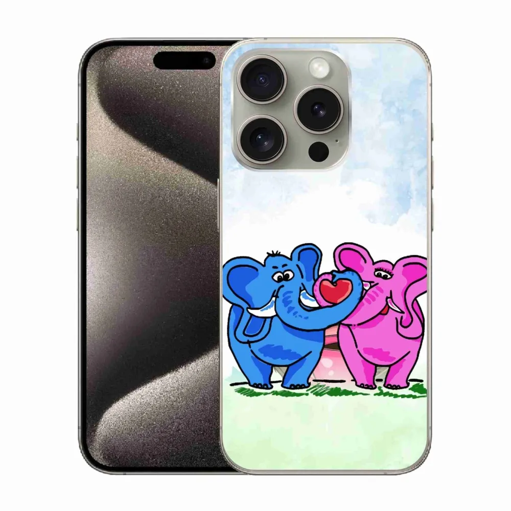 Rugalmas zselés tok mmCase képpel iPhone 15 Pro készülékhez - szerelmes elefántok