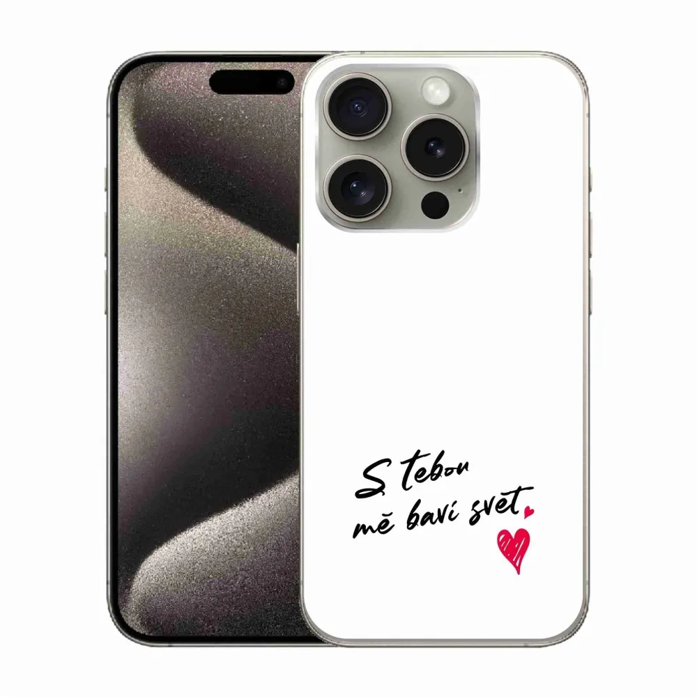 Rugalmas zselés tok mmCase képpel iPhone 15 Pro készülékhez - szerelmes szöveg 1 fehér háttér