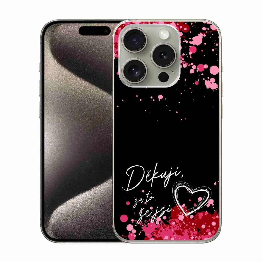 Rugalmas zselés tok mmCase képpel iPhone 15 Pro - szerelmes szöveg 2 fekete háttérrel
