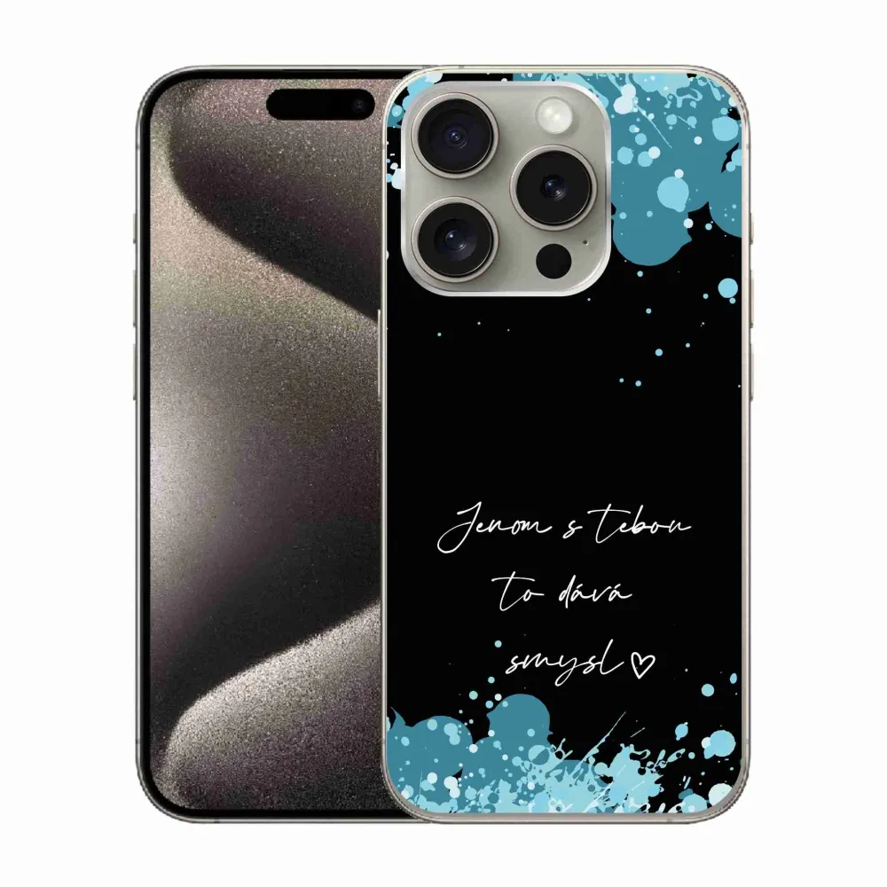 Gél borítás mmCase iPhone 15 Pro készülékhez - szerelmes szöveg fekete háttérrel