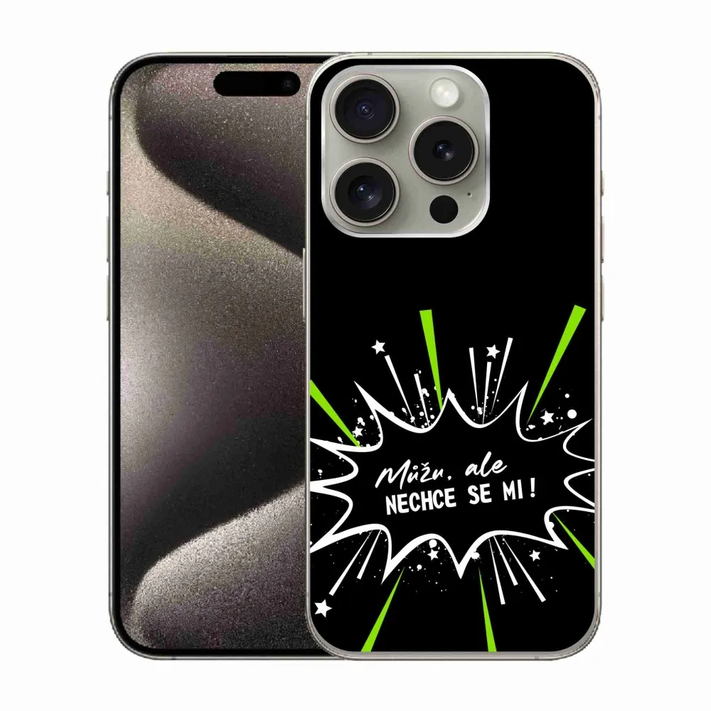 Rugalmas zselés tok mmCase képpel iPhone 15 Pro - vicces szöveg 11 fekete háttérrel