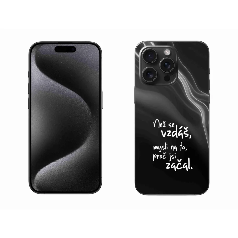 Rugalmas zselés tok mmCase képpel iPhone 15 Pro Max - idézet 2 fekete háttérrel