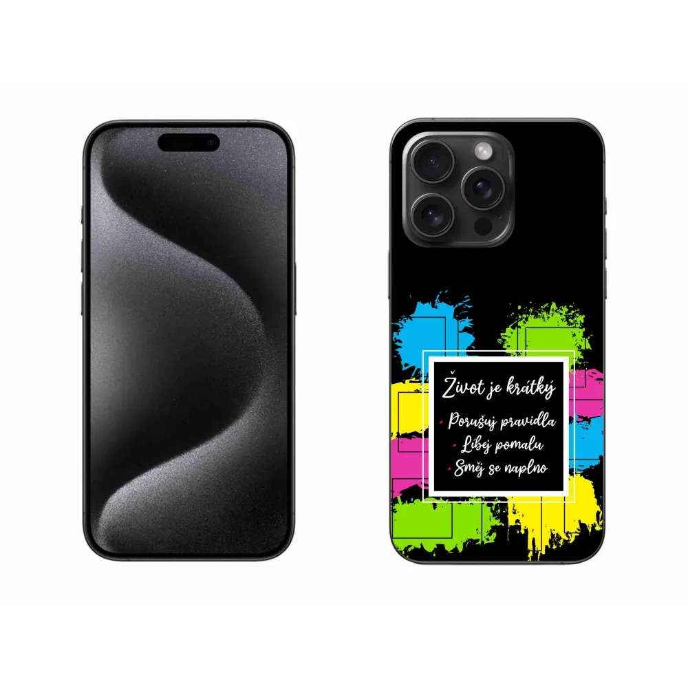 Rugalmas zselés tok mmCase képpel iPhone 15 Pro Max - idézet 5 fekete háttérrel