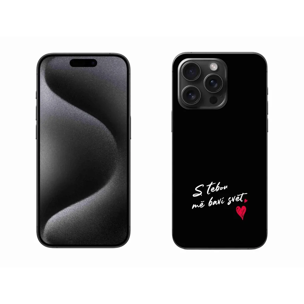 Rugalmas zselés tok mmCase képpel iPhone 15 Pro Max készülékhez - szöveg szerelemben 1 fekete háttérrel