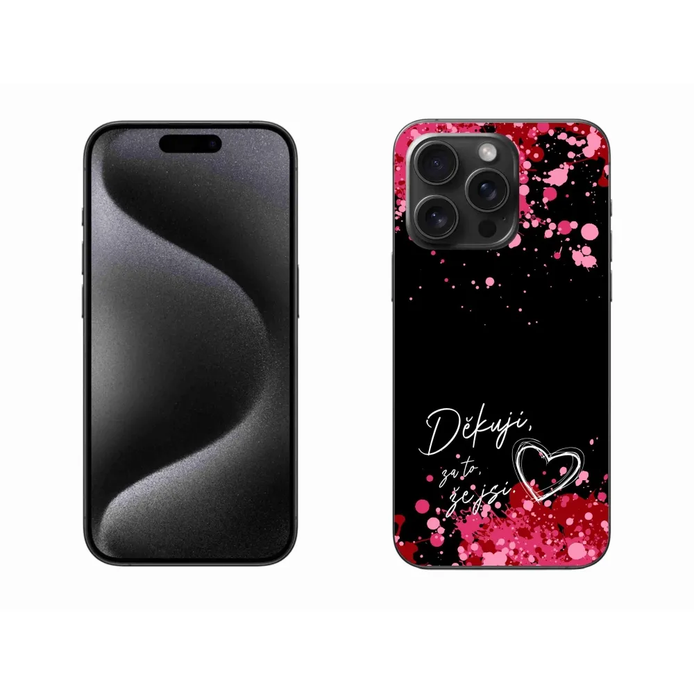 Rugalmas zselés tok mmCase képpel iPhone 15 Pro Max készülékre - szerelmes szöveg 2 fekete háttérrel